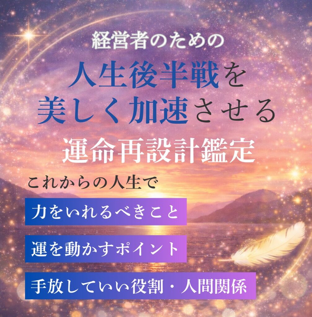 「経営者のための人生後半戦を美しく加速させる運命再設計鑑定」のお知らせ